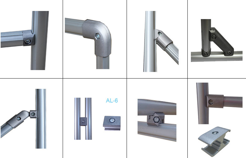 4. This aluminum alloy pipe joints connecting the aluminum alloy pipe is putting the pipe inside the aluminum pipe connector in 360 degree free rotation